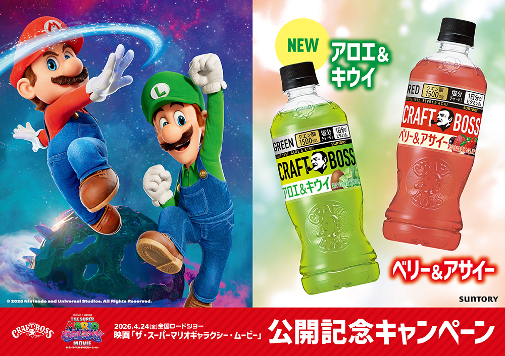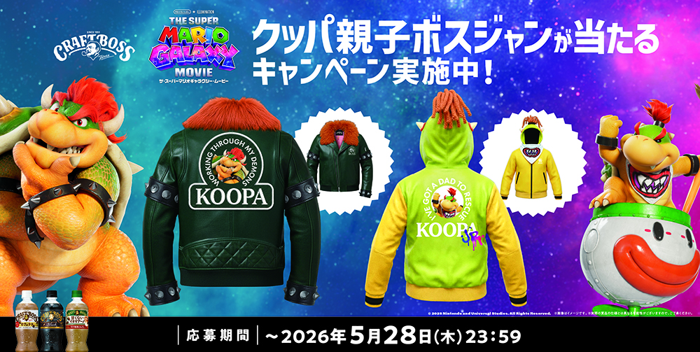「クラフトボス」とのコラボ第2弾として、『ザ・スーパーマリオギャラクシー・ムービー』に登場するカメ族の王(=BOSS)クッパとクッパJr.をモチーフにしたボスジャンの親子セットが抽選で5名様に当たるキャンペーンを実施しております。